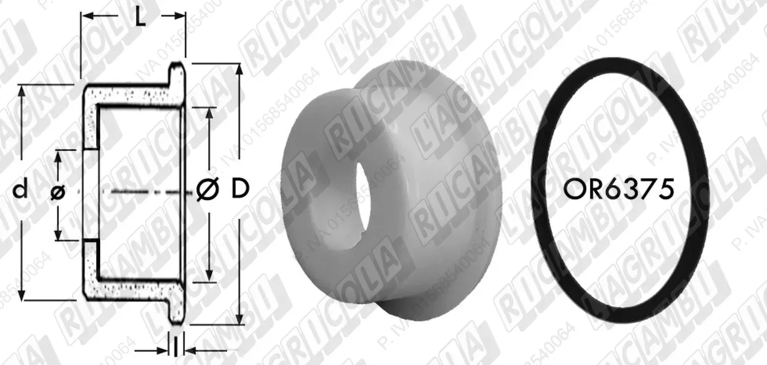 KIT BOCCOLA Fulcro c/foro EST.(d=80 - ø=38- Ø=70,5 - D=100 - L=32,5 - I=5,2) + ANELLO OR 6375 (94,62X5,34) FCD Rotex R 5-6-7, FD Rotex 5-6-7, FD Rotex TSB 5-6-7 (dettagli) | Orig. BCS | 599.68886 552.36299=552.32014 |