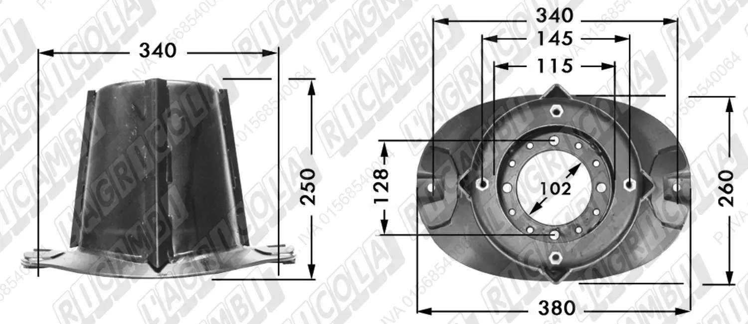 DISCO PORTACOLTELLI Interasse 340 CENTRALE FCD Rotex F 6-7, FCD Rotex R 5-6-7, FCD Rotex R 5-6-7 Avant, FD Rotex 5-6 Avant, FD Rotex 5-6-7, FD Rotex TSB 5-6-7 (dettagli) | Orig. BCS | 590.36210N 590.32494 |