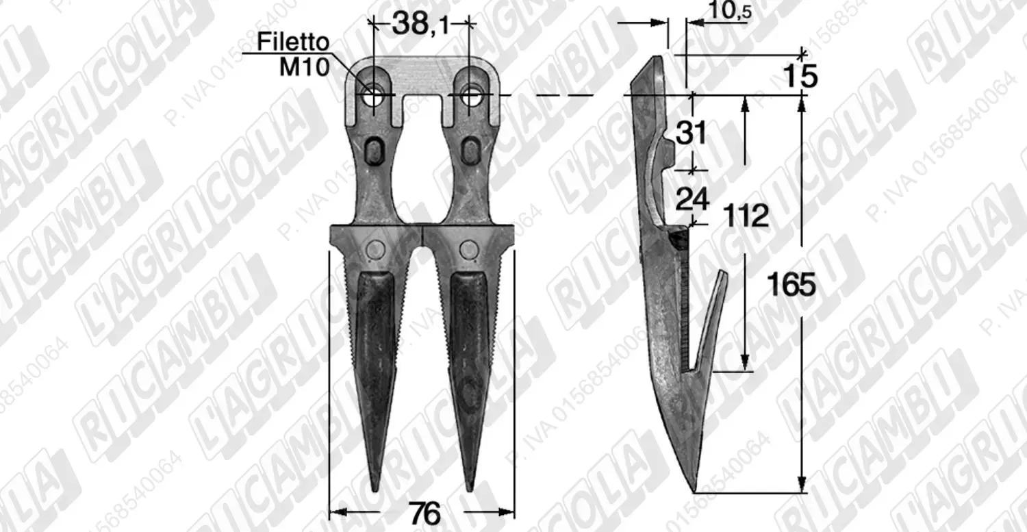 DENTE DOPPIO FITTO - Foro Filett. M10 (dettagli) | Imp. su BCS | 590.27622 |