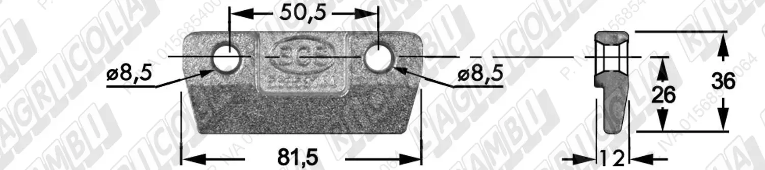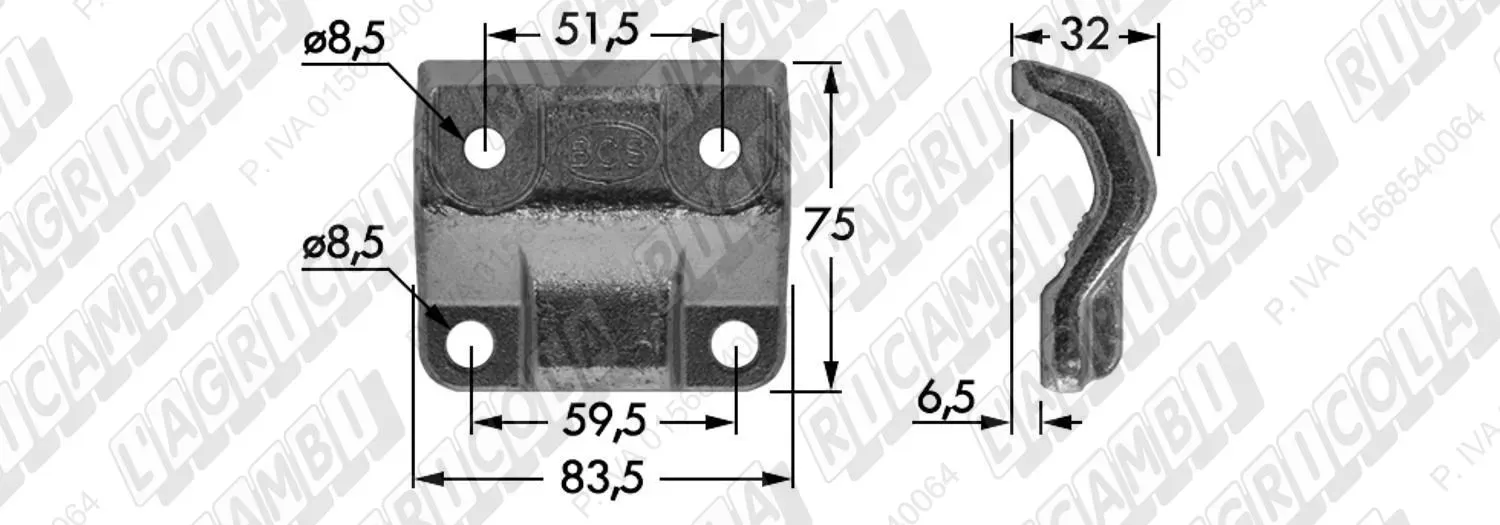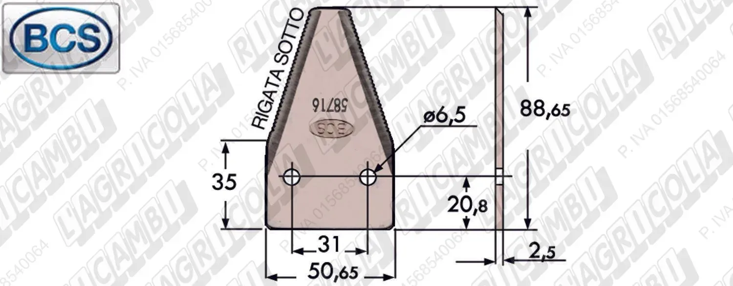SEZIONE Rigata SOTTO n°2 Fori Cilindrici ø6,5 (dettagli) | Orig. BCS | 563.58716 | |