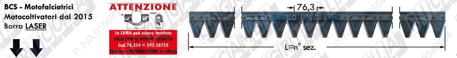 LAMA Sezioni (n°15 Sezioni = 0,80) Attacco CENTRALE Laser Tipo NUOVO (dal 2015) (dettagli) | Orig. BCS | 590.58724T | |