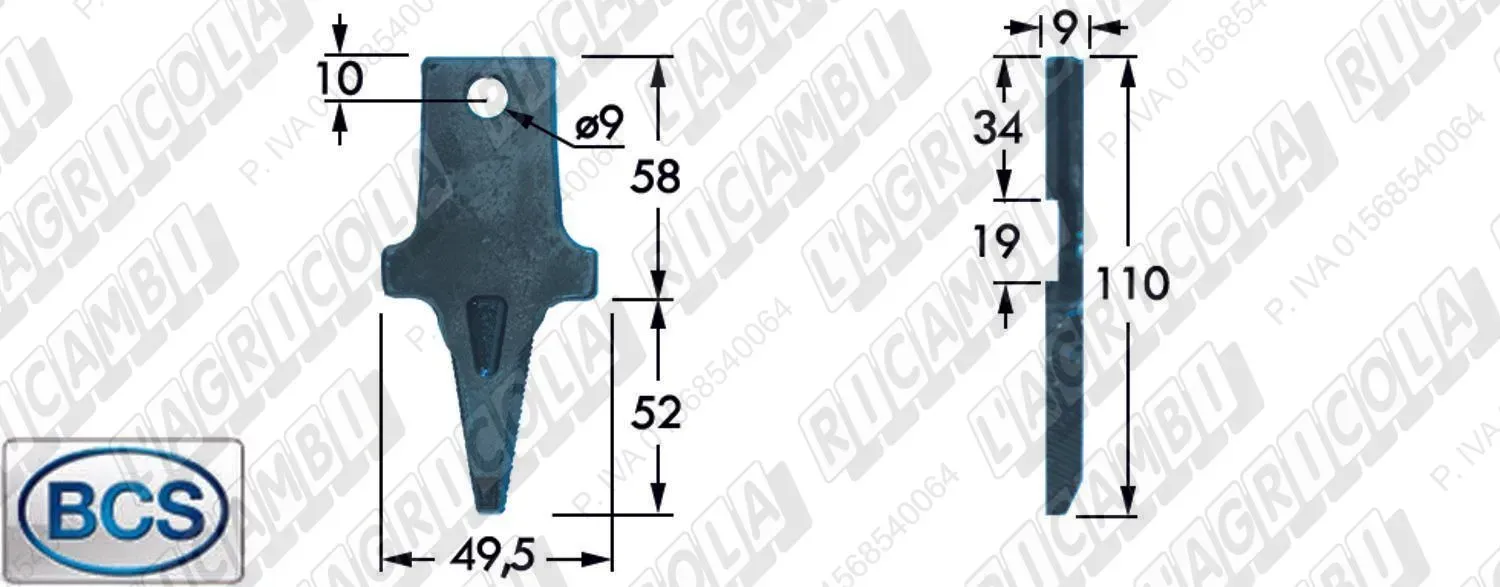 DENTE SINGOLO - Foro ø8,5 (solo per Attacco CENTRALE) (dettagli) | Orig. BCS | 524.58714T |