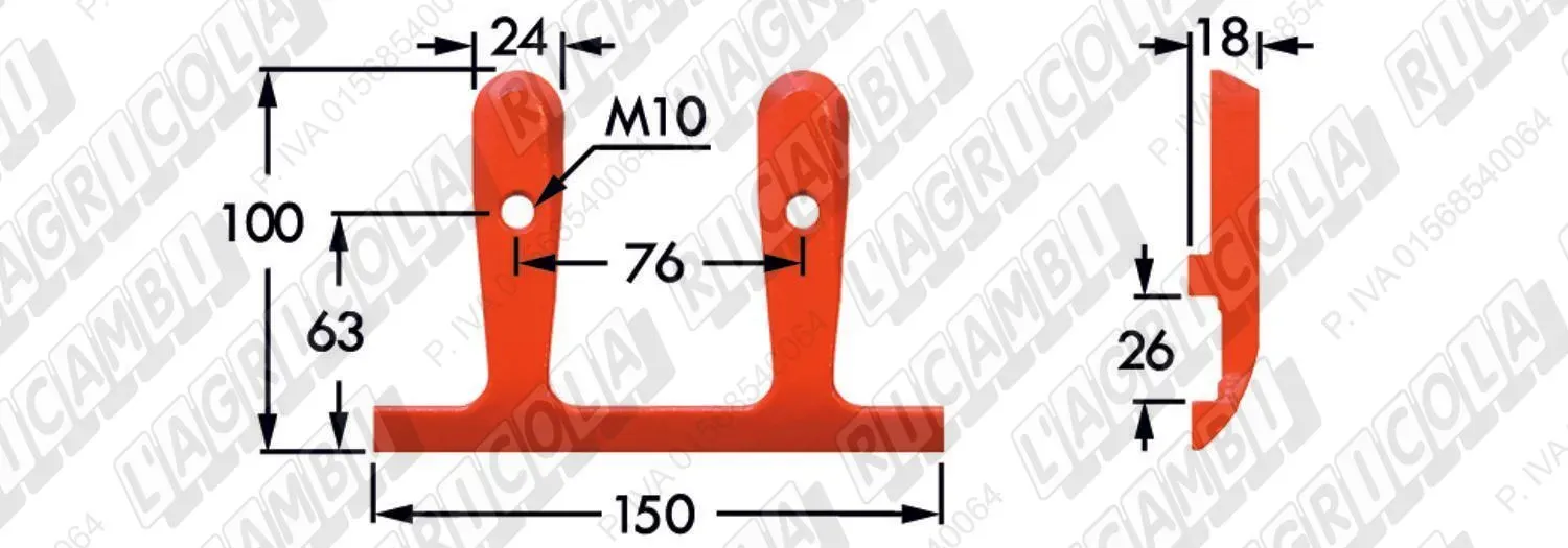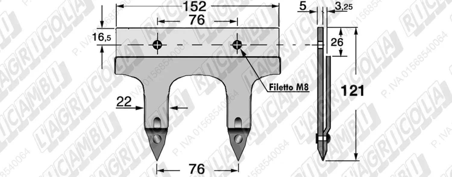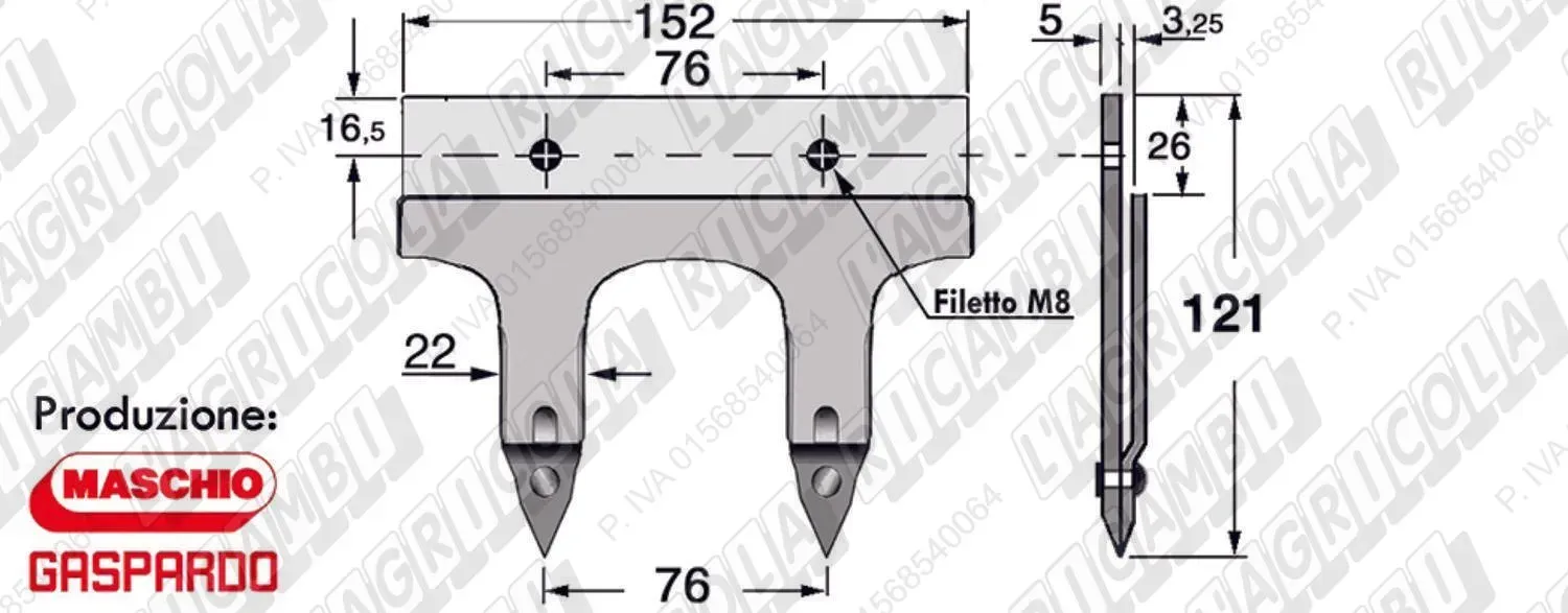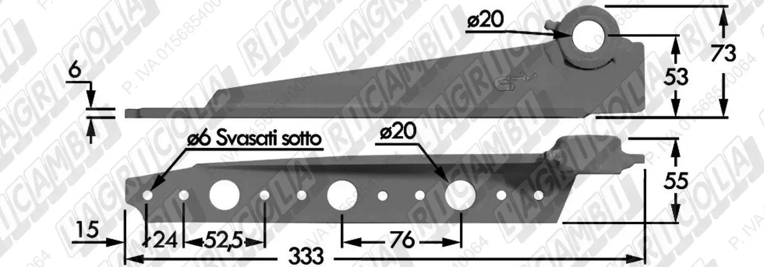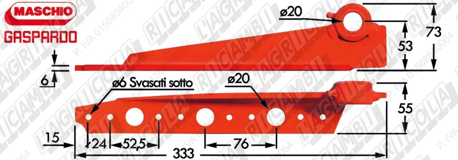 TESTALAMA per Lama Denti Smontabili (n°8 Fori ø6 + n°3 Fori ø20 - L.tot.=333) (dettagli) | Imp. su Gaspardo | 13013230=G13013230R |