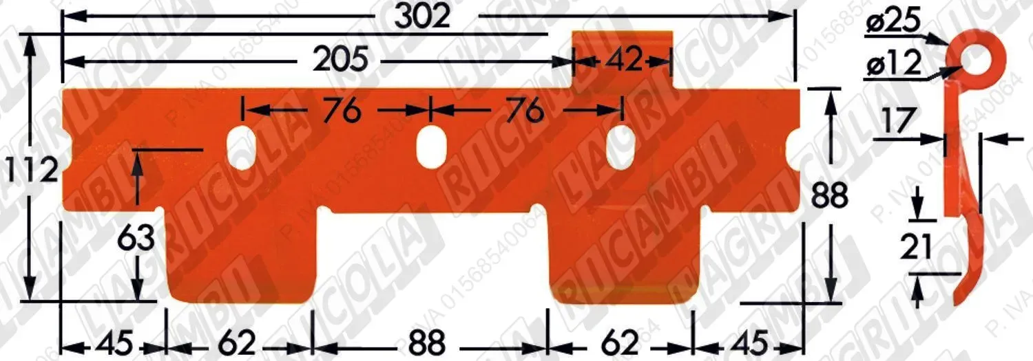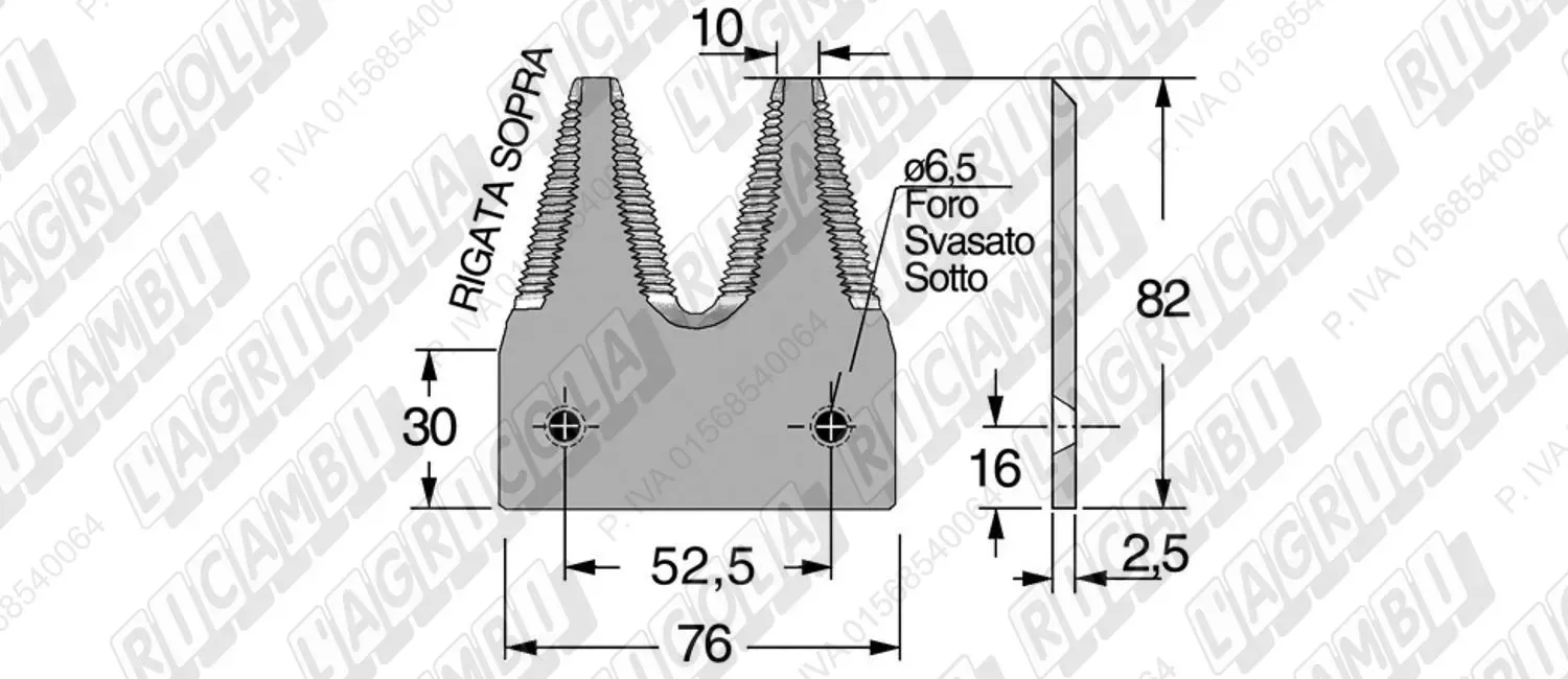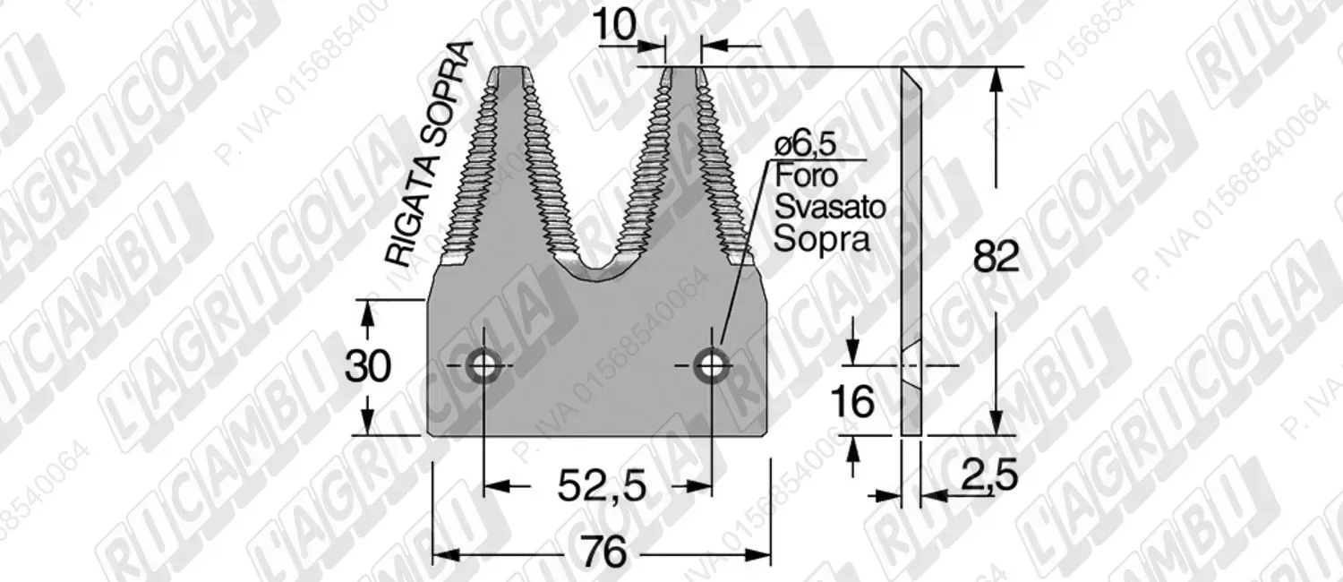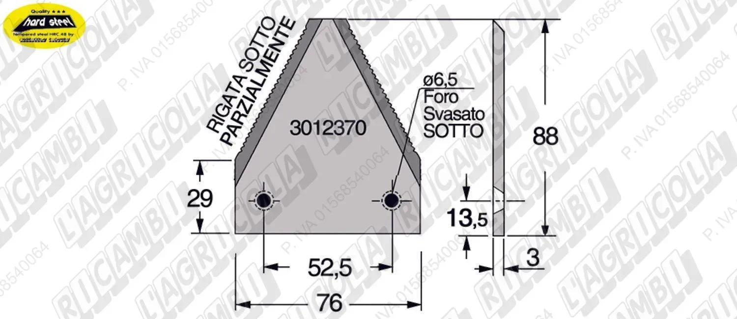 SEZIONE Rigata SOTTO Parzialmente n°2 Fori ø6,5 Svasati Sotto (dettagli) | Imp. su Gaspardo | 21120243=G21120243R;3012370 |