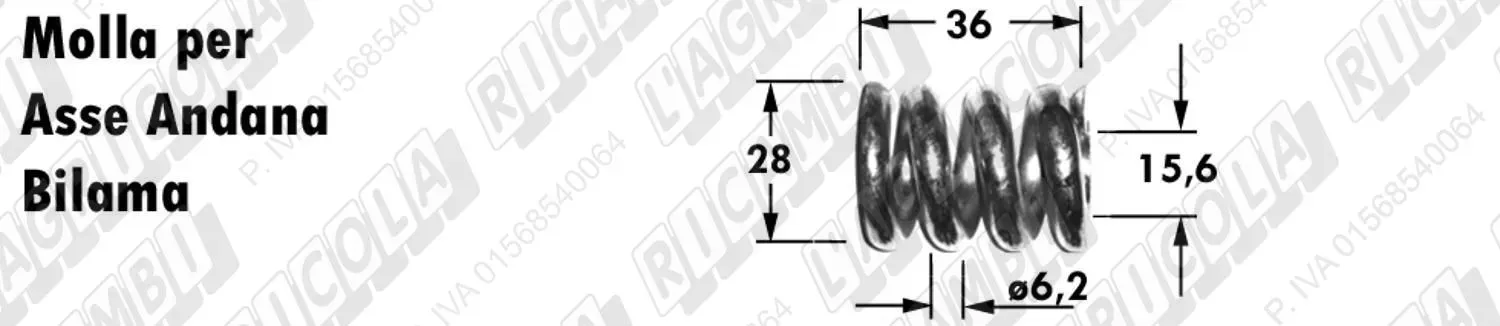 MOLLA a COMPRESSIONE L=36 - ø=28 - Filo ø 6,2 per Asse Andana (dettagli) | Imp. su Gaspardo | 65338001=G65338001R | |
