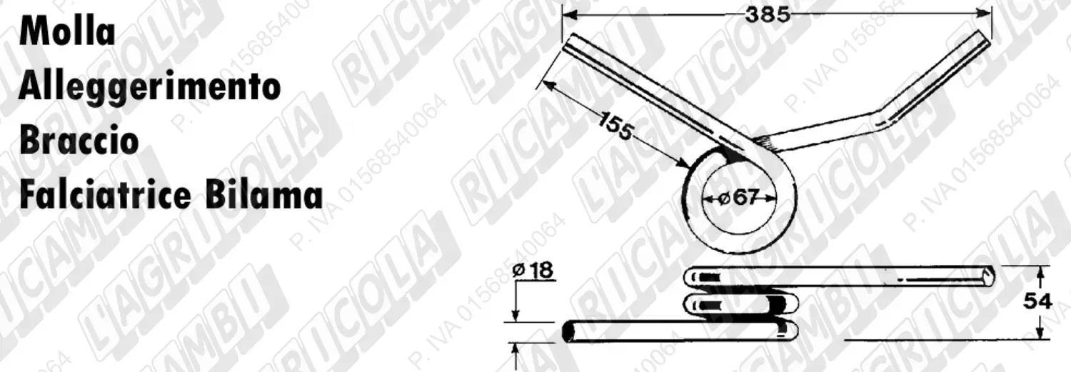MOLLA a TORSIONE Filo ø 18 Braccio Cerniera (dettagli) | Orig. Gaspardo | 21120319=G21120319R |