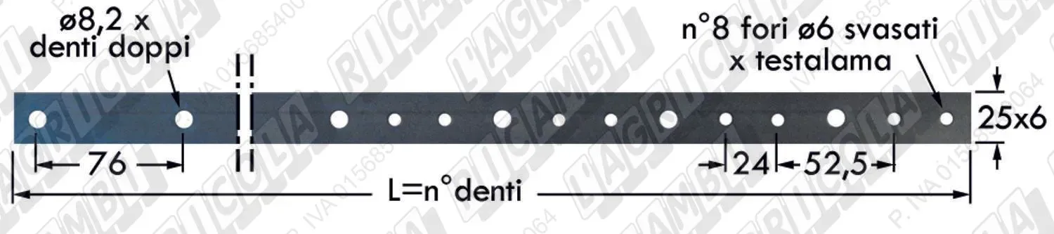 TESTALAMA per Lama Sezioni (n°9 Fori ø6 - L.tot.=380 - con Scasso) (dettagli) | Imp. su Gaspardo | 13013190=G13013190R |