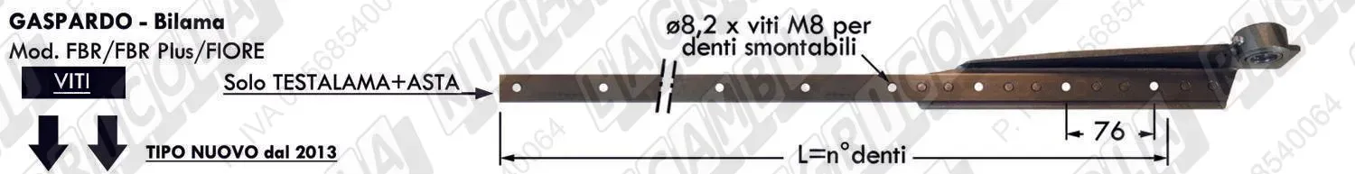 TESTALAMA + ASTA FORATA (per 14 Denti Avvitabili - L=205) Tipo Nuovo dal 2013 (dettagli) | Imp. su Gaspardo | 13013350=G13013350R |