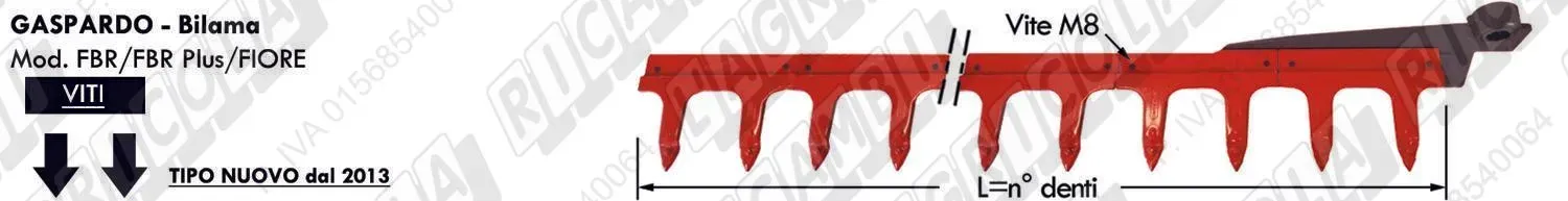 | Catalogo home > Ricerca per settore > Settore FALCIATRICI > GASPARDO (Bilama - Barrefalcianti) > Gaspardo - BILAMA: Mod. FBR/FBR Plus/FIORE (Viti) |