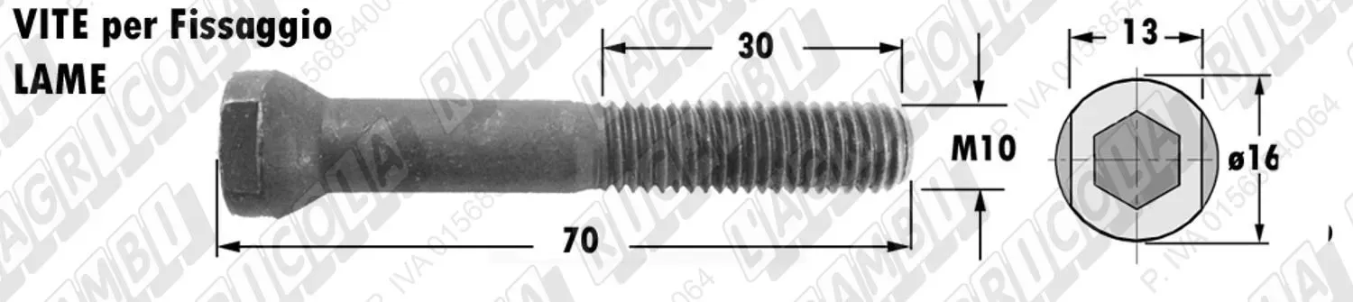 VITE CONICA - Testa Speciale Svasata Cava Esag. - M10 x 70 (dettagli) | Orig. Gaspardo | 21120071=G21120071R |