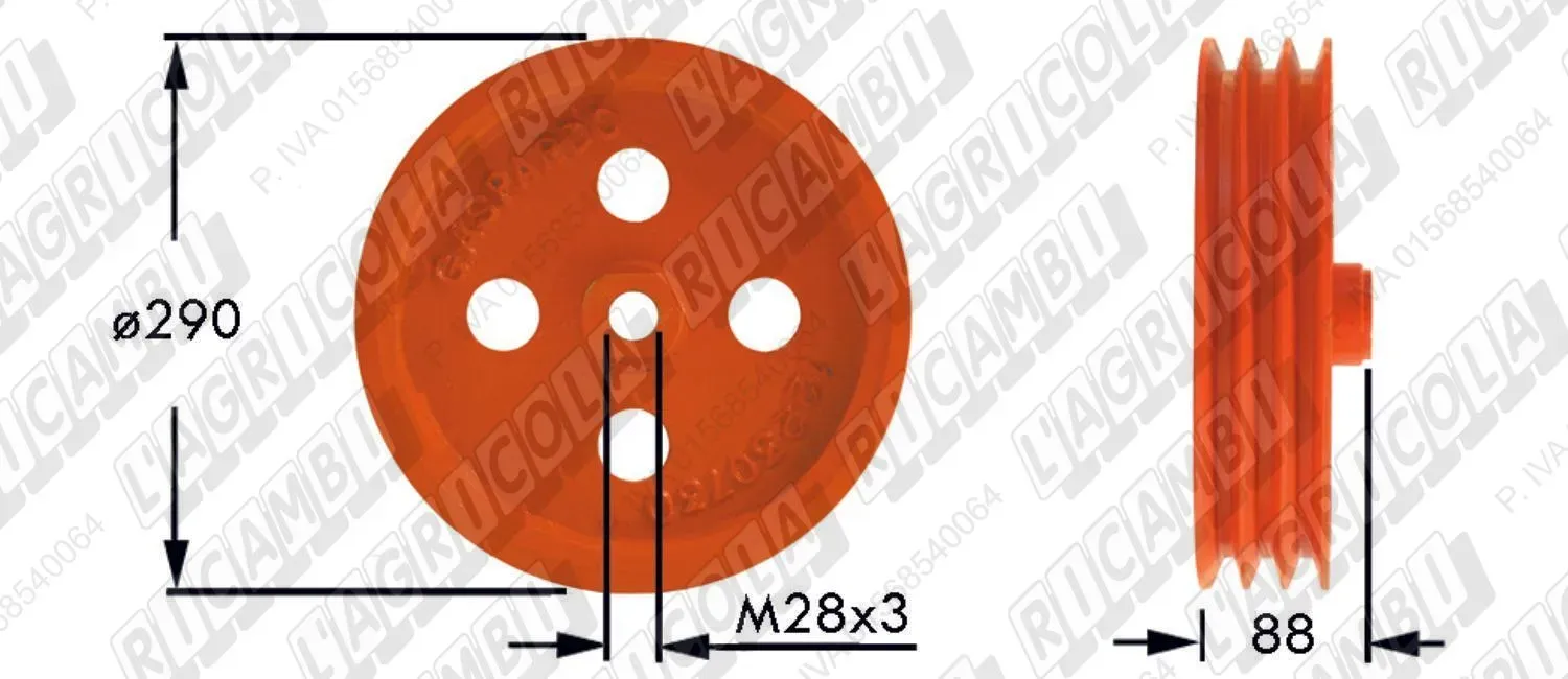 PULEGGIA MOTRICE n°3 Gole Sez. B - D=290 - Mozzo Interno M28x3 (dettagli) | Orig. Gaspardo | 21120117=G21120117R |