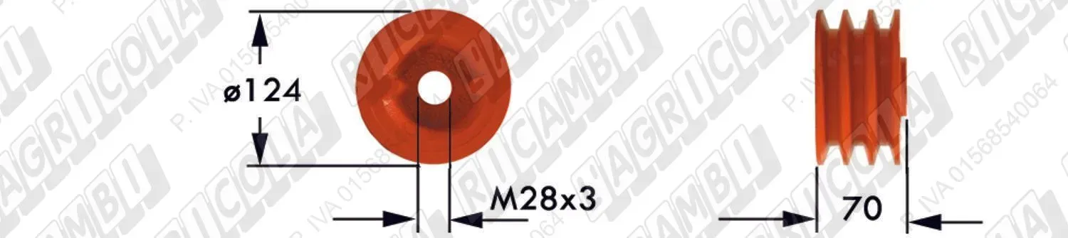PULEGGIA CONDOTTA n°3 Gole Sez. B - D=124 - Mozzo Interno M28x3 (dettagli) | Orig. Gaspardo | 21120118=G21120118R;21120118BR | |