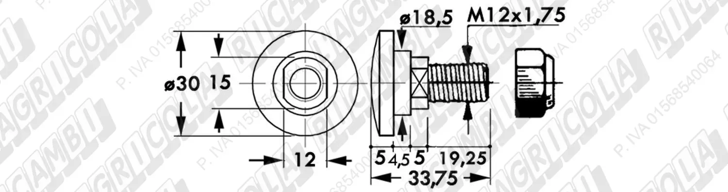 BULLONE PORTACOLTELLO ø 18,5 - M12x1,75 Acciao Extra Terreni Sassosi Rotor, FLV C1, Front 250 C (dettagli) | Orig. Gribaldi&Salvia | 46375 | |