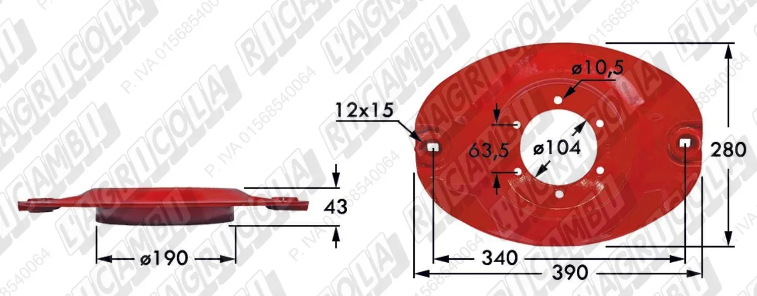 COLTELLO-LAMINO Elicoidale 1 - 108 x 48 Sp.4 - Foro ø19,0 /DX ROTOR (Dal 2012), FLV C10, FRONT 250 C (dettagli) | Imp. su Gribaldi&Salvia | 46363 |
