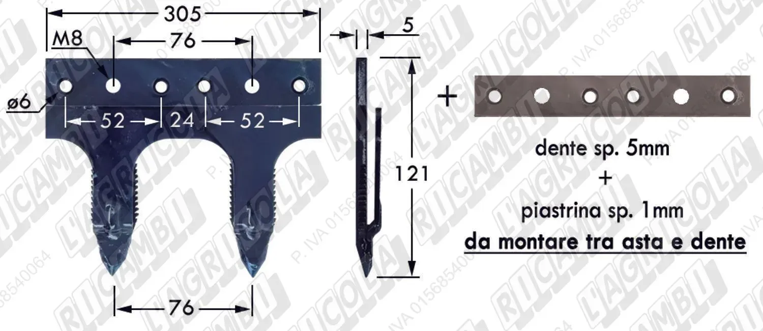 DENTE DOPPIO - Unificato Ribattini / Viti Sp. mm. 5 + spessore mm. 1 BF DF - DS - SDS (dettagli) | Imp. su Ima La Rocca | 21587251004 | |