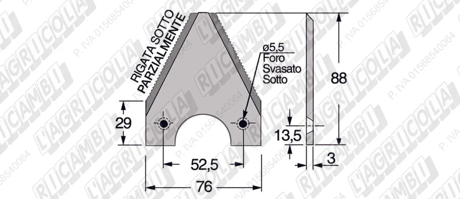 SEZIONE Rigata SOTTO Parzialmente n°2 Fori ø5,5 Svasati Sotto (dettagli) | Imp. su Ima La Rocca | 67601251001 |