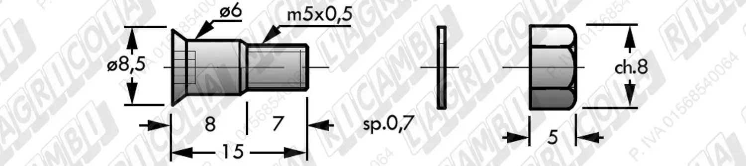 KIT VITE TSPEI M 5 x 15 - Passo 0,5 + Rondella + Dado BF DF - DS - SDS (dettagli) | Imp. su .Costrutt. Vari | 69201251002 + 67301091008 + 61501251001 | |