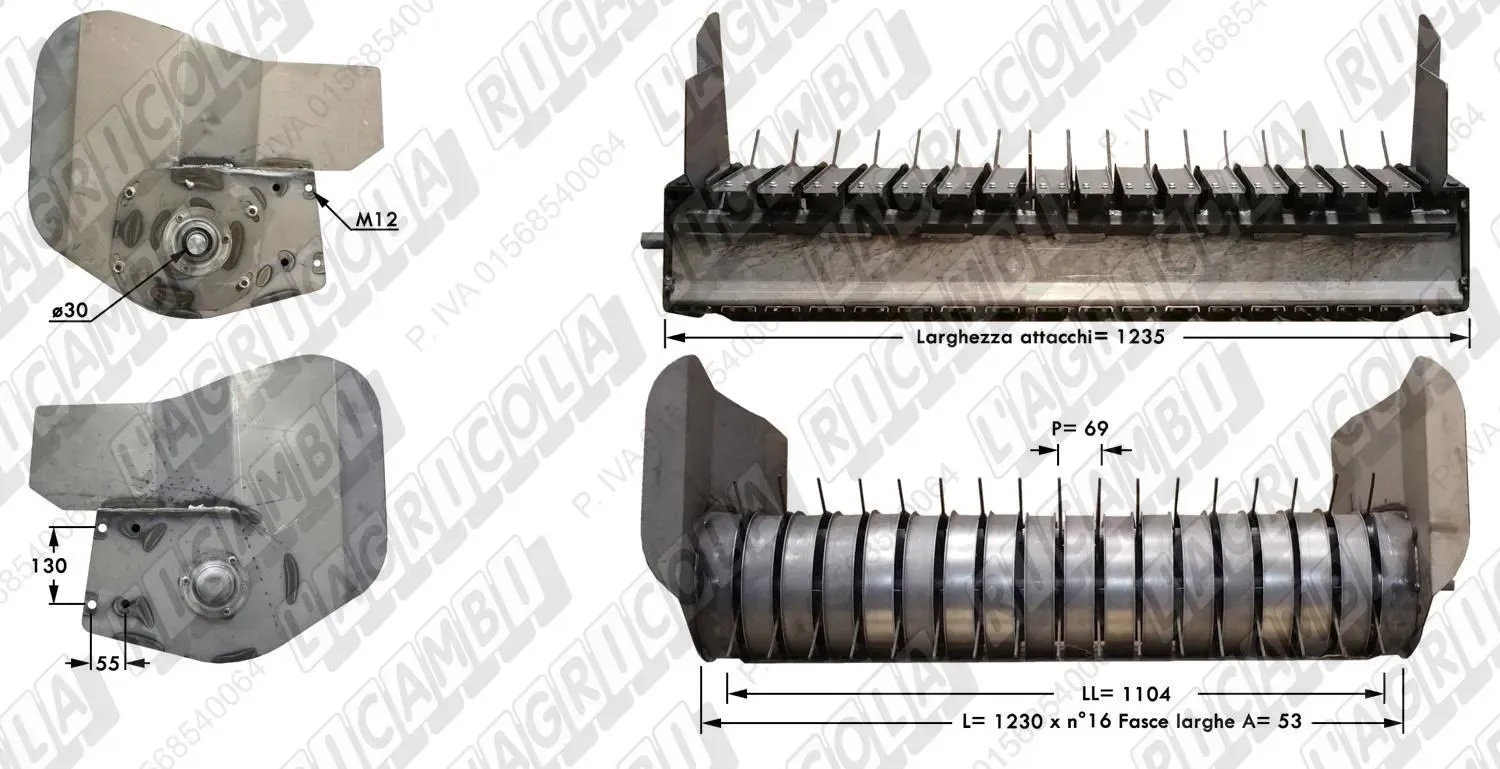 COMPLETE PICK-UP n°16 Fasce A=53 P=69 con CONVOGLIATORE LL=1104 mm - L= 1230 mm (dettagli) | Imp. su Wolagri | WOLAGRI |