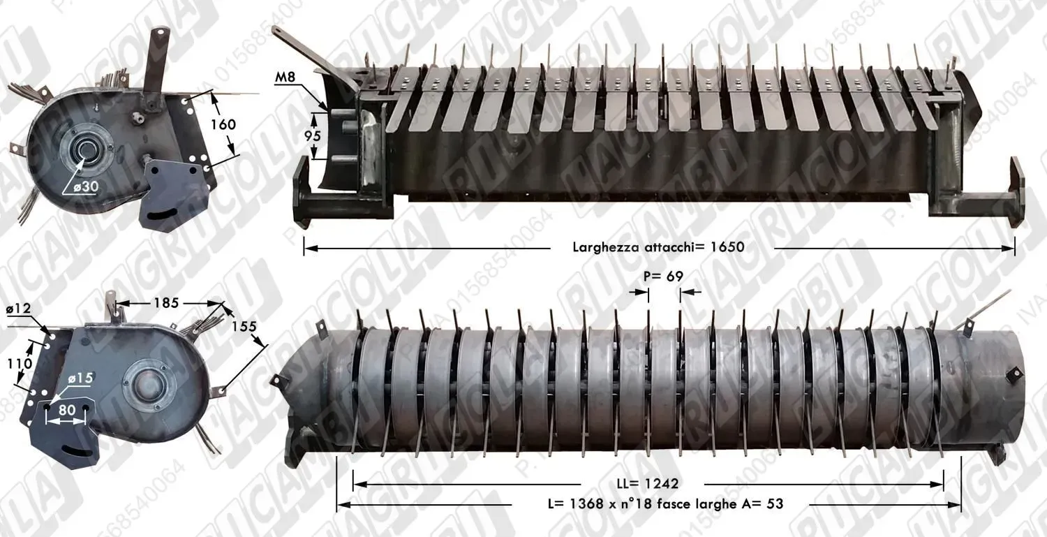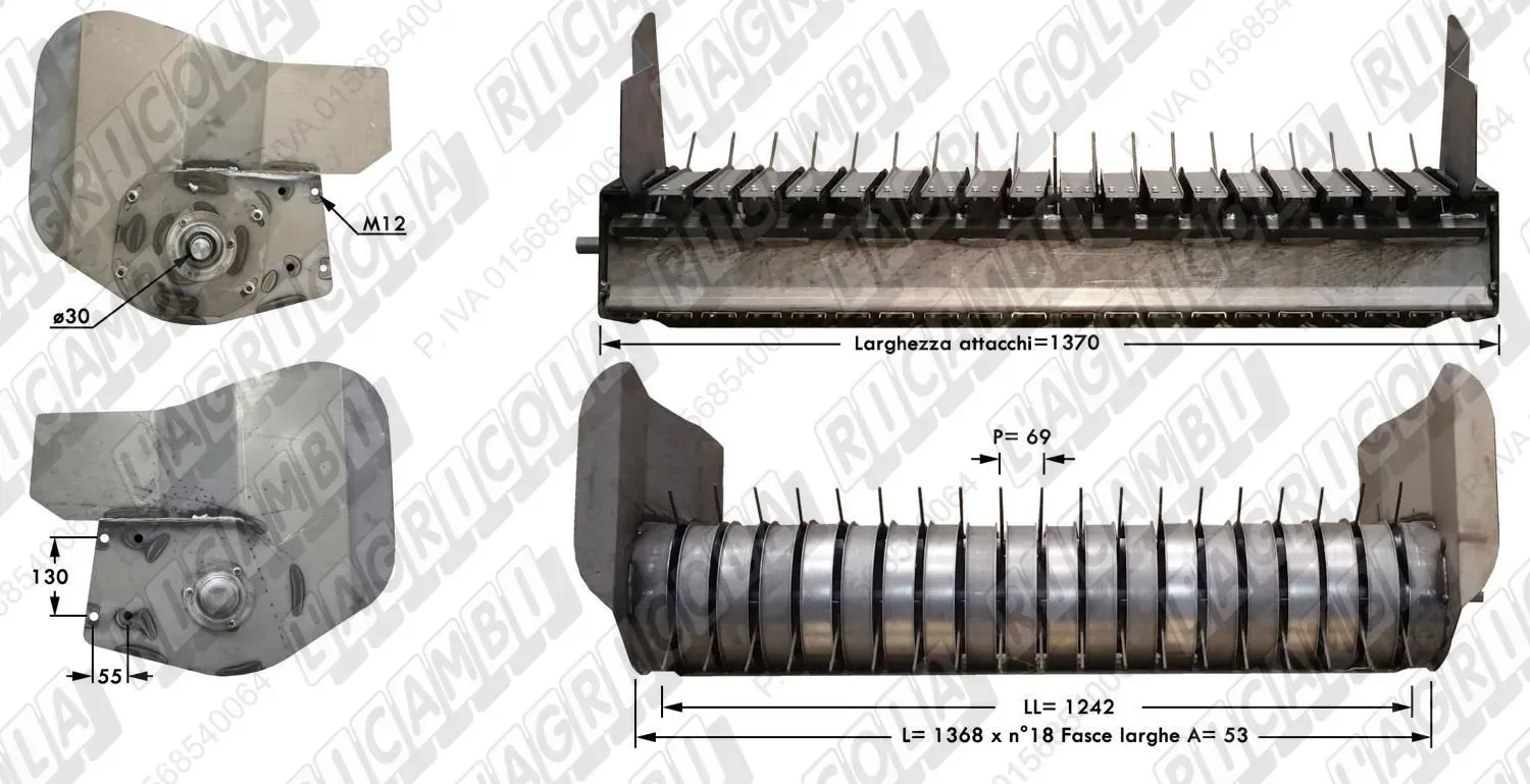 COMPLETE PICK-UP n°18 Fasce A=53 P=69 con CONVOGLIATORE (Attacco Laterale) LL=1242 mm - L= 1368 mm (dettagli) | Imp. su Wolagri | WOLAGRI | |