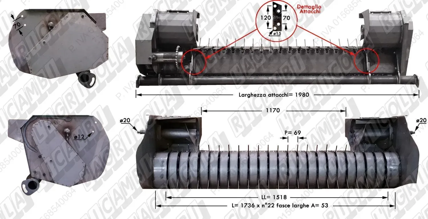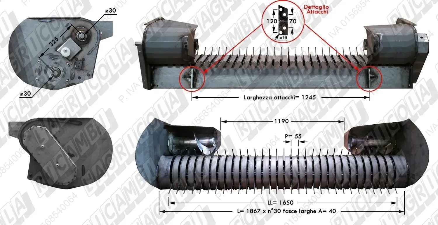 COMPLETE PICK-UP n°30 Fasce A=40 P=55 con COCLEE LL=1650 mm - L= 1867 mm (dettagli) | Imp. su Laverda | LAV. 400.010.554 FB212L-FB215L |