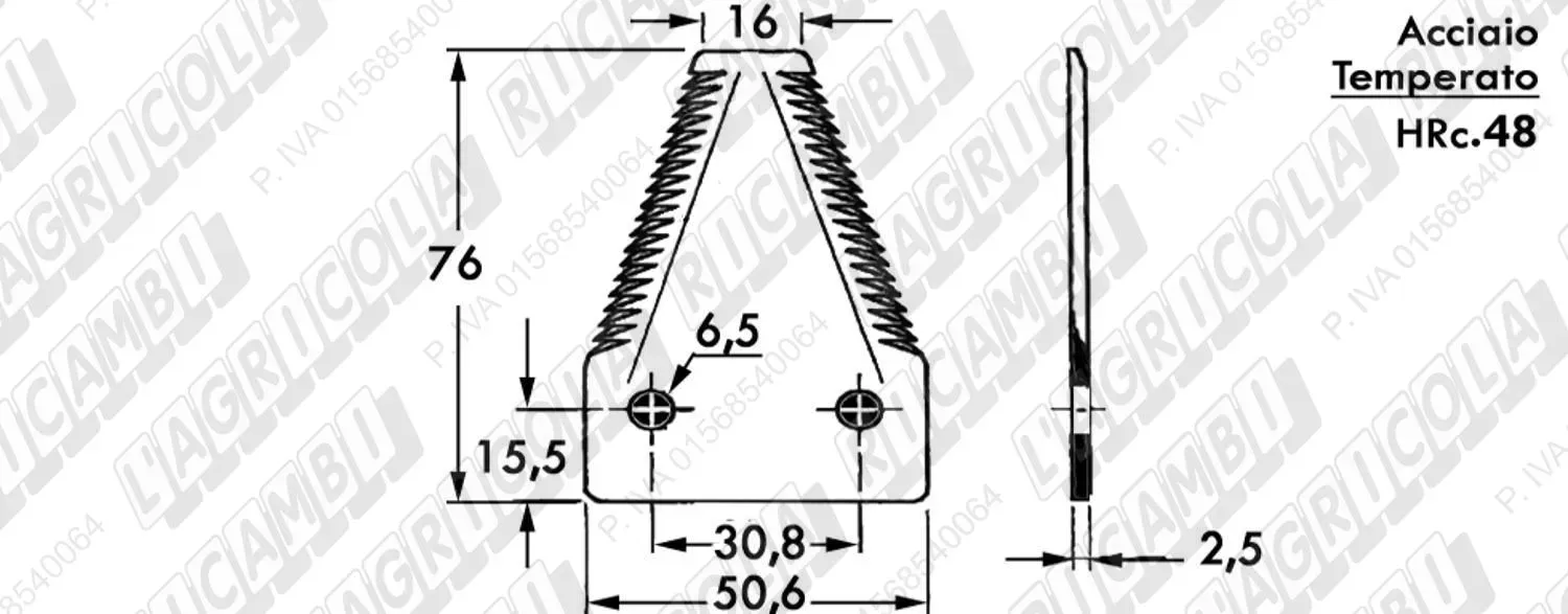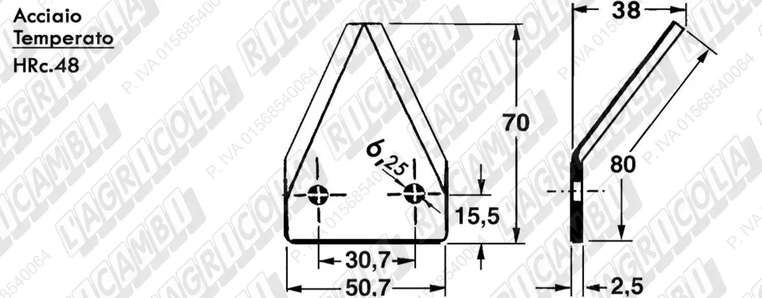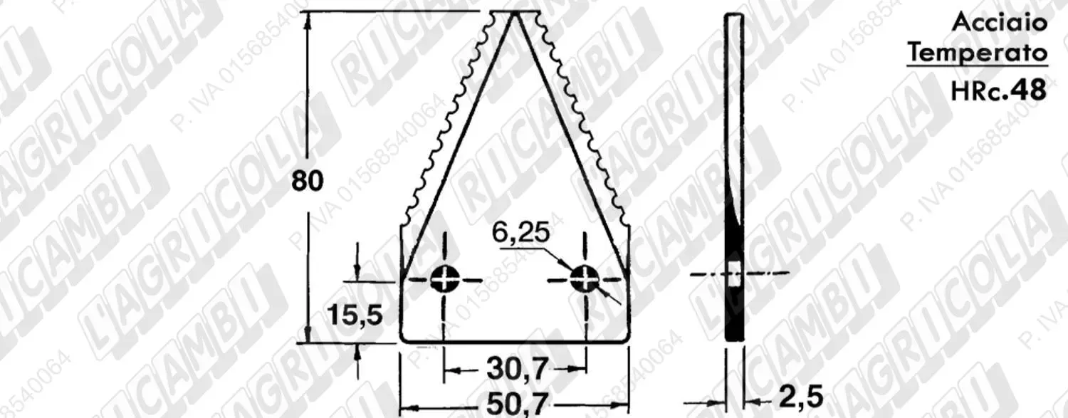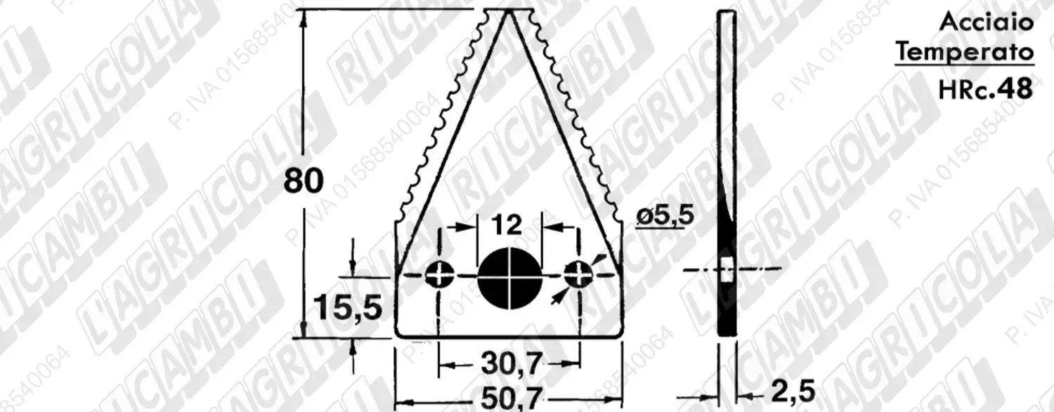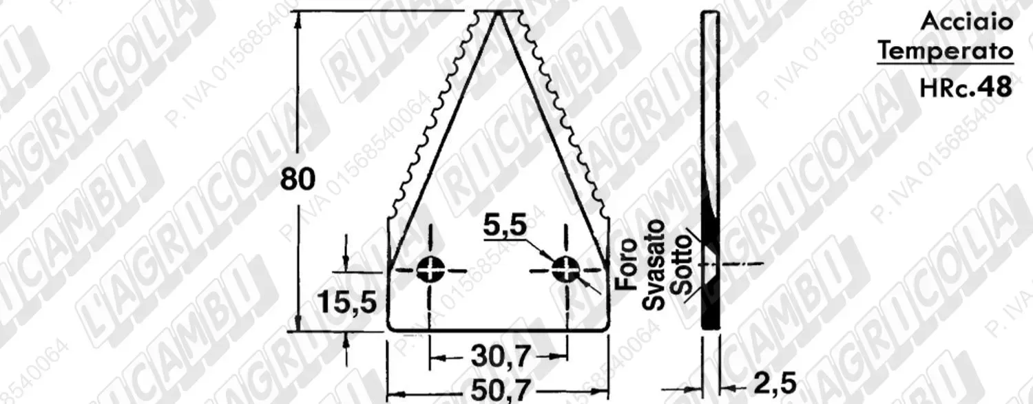 SEZIONE (50,0 x 80 x 2,5) Diritta - Liscia Fori ø 6,5 + ø12 Cilindr. TAGLIO OPPOSTO