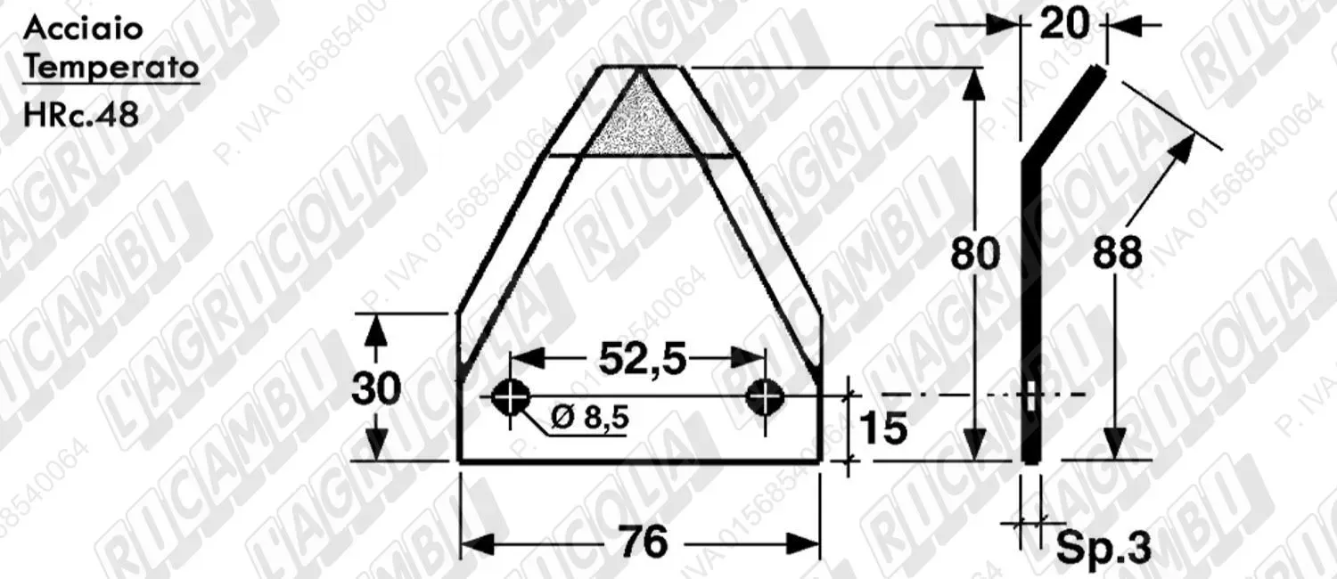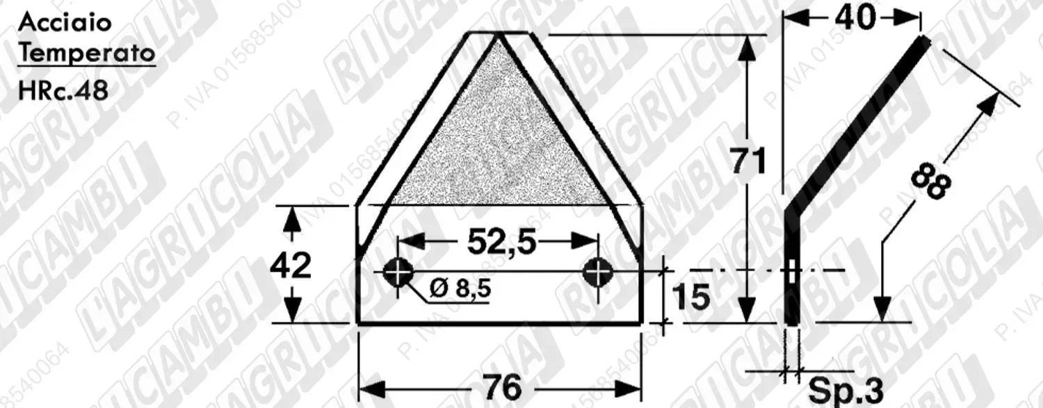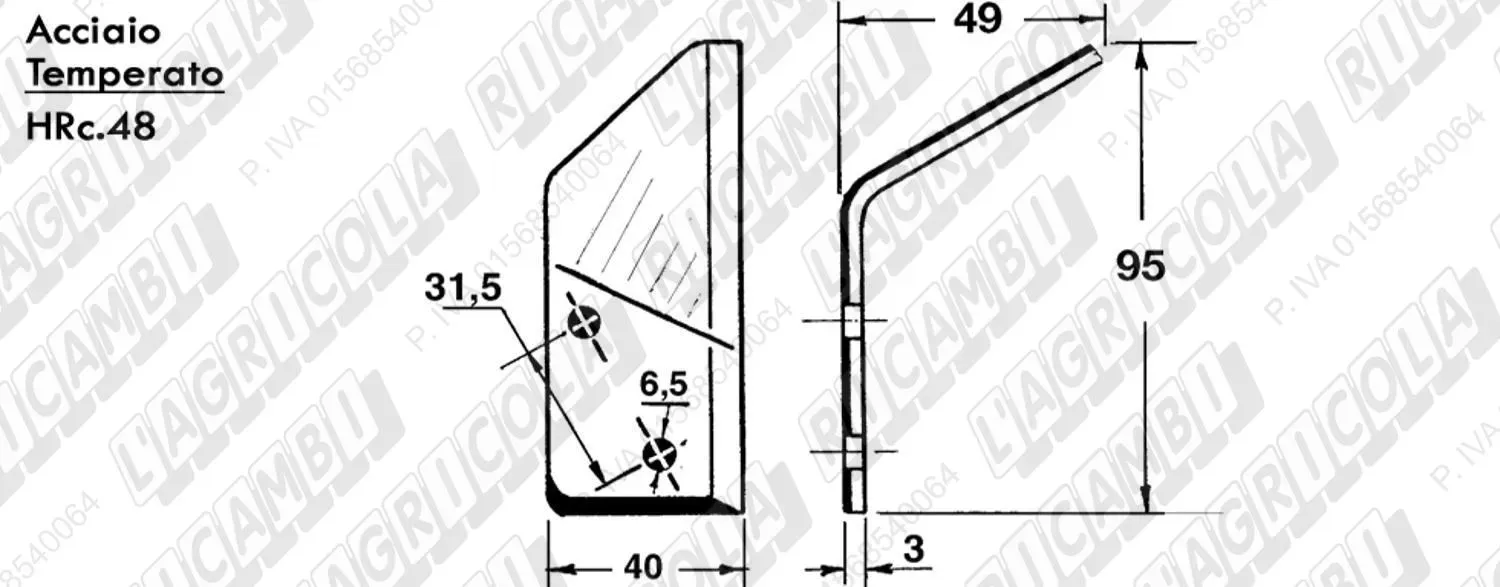 COLTELLO (40 x 95 x 3) Piegato - DESTRO+SINISTRO Fori ø 6,5 Cilindr.