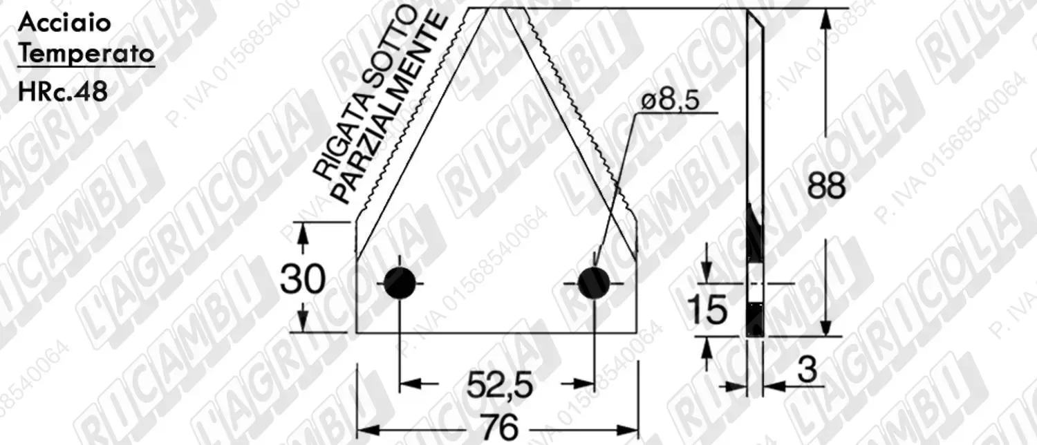 SEZIONE (76,0 x 88 x 3) Diritta - Rigata Sotto Parzialm. Fori ø 8,5 Cil.